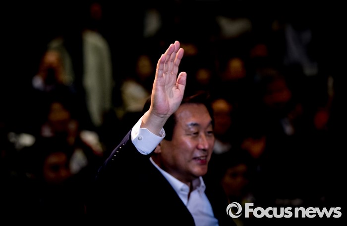 (서울=포커스뉴스) 14일 오후 서울 영등포구 그랜드컨벤션센터에서 열린 당대표 취임 2주년 행사에 참석한 김무성 새누리당 전 대표가 취재진을 향해 손을 들어 인사하고 있다.