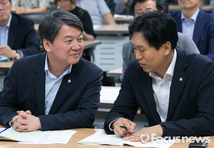 (서울=포커스뉴스) 14일 오후 서울 여의도 국회 의원회관에서 국민의당 주최로 열린 '국민의 동의없는 사드 배치 올바른 결정인가' 토론회에 참석한 안철수(왼쪽) 전 대표와 손금주 대변인이 대화하고 있다.