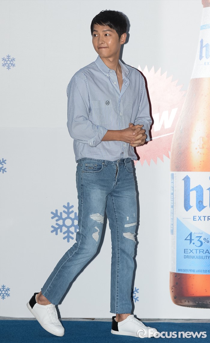 (서울=포커스뉴스) 14일 오후 서울 서대문구 신촌 일대에서 열린 '제2회 신촌맥주축제'에 참석한 배우 송중기가 무대로 들어서고 있다.