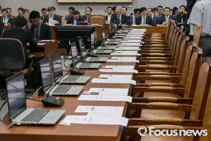 (서울=포커스뉴스) 15일 오전 서울 여의도 국회에서 예정된 운영위원회 전체회의에 새누리당 의원들이 불참해 빈 자리가 보이고 있다. 이날 새누리당은 더불어민주당 소속 홍영표 국회 환경노동위원장이 야당 단독으로 예비비 지출안 등을 처리한 것과 관련해 홍 위원장의 사퇴를 요구하며 모든 상임위 보이콧을 선언했다.