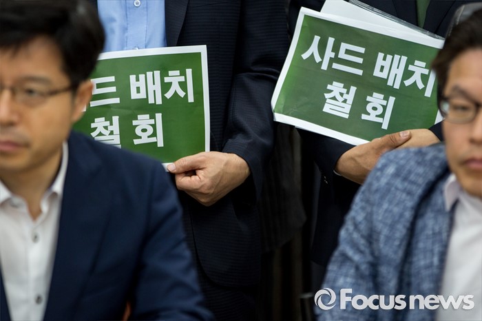 (서울=포커스뉴스) 15일 오전 서울 여의도 국회에서 열린 '국민의당 비대위원-중진의원 연석회의'에서 당 관계자들이 '사드배치 철회, 국회동의 촉구'한 문구가 적힌 피켓을 들고 있다.