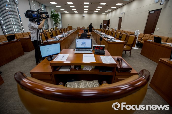 (서울=포커스뉴스) 15일 오전 서울 여의도 국회에서 예정된 저출산-고령화 대책 특별위원회 1차 전체회의에 새누리당 의원들의 불참으로 파행되고 있다. 이날 새누리당은 더불어민주당 소속 홍영표 국회 환경노동위원장이 야당 단독으로 예비비 지출안 등을 처리한 것과 관련해 홍 위원장의 사퇴를 요구하며 모든 상임위 보이콧을 선언했다.