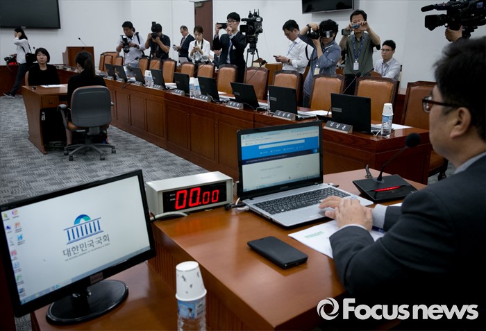 (서울=포커스뉴스) 15일 오전 서울 여의도 국회에서 예정된 가습기살균제 사고 진상규명과 피해구제 및 재발방지 대책 마련을 위한 국정조사특별위원회 전체회의에 참석한 야당 의원들이 새누리당 의원들을 기다리며 회의 진행을 하고 있다. 이날 새누리당은 더불어민주당 소속 홍영표 국회 환경노동위원장이 야당 단독으로 예비비 지출안 등을 처리한 것과 관련해 홍 위원장의 사퇴를 요구하며 모든 상임위 보이콧을 선언했다.