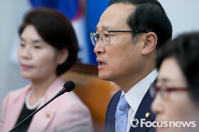 (서울=포커스뉴스) 15일 오전 서울 여의도 국회에서 홍영표 국회 환경노동위원장이 결산 표결 관련 입장을 전하는 기자간담회를 하고 있다. 이날 새누리당은 더불어민주당 소속 홍 위원장이 야당 단독으로 예비비 지출안 등을 처리한 것과 관련해 위원장 사퇴를 요구하며 모든 상임위 보이콧을 선언했다.