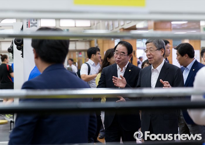 (서울=포커스뉴스) 김희옥 새누리당 혁신비상대책위원장이 15일 오전 서울 노원구 태릉선수촌을 방문해 리우올림픽에 출전하는 선수들을 격려하고 있다.