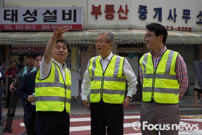 | △ '옐로 카펫' 설치 현장 방문한 김종인 대표 |