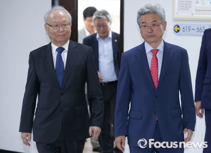 (서울=포커스뉴스) 15일 오후 서울 여의도 국회에서 열린 정보위원회 전체회의에 이병호(왼쪽) 국가정보원장과 이철우 정보위원장이 참석하고 있다.