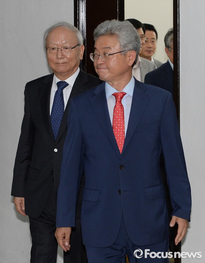 | △ 회의 향하는 이철우 위원장-이병호 원장 |