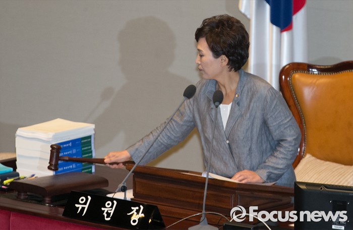 (서울=포커스뉴스) 15일 오후 서울 여의도 국회에서 열린 예산결산특별위원회 전체회의에 참석한 김현미 위원장이 개의 선언을 하고 있다.