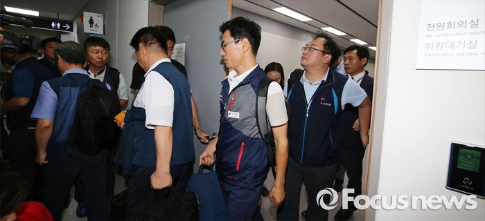 | △ 회의장 박차고 나서는 근로자위원 |