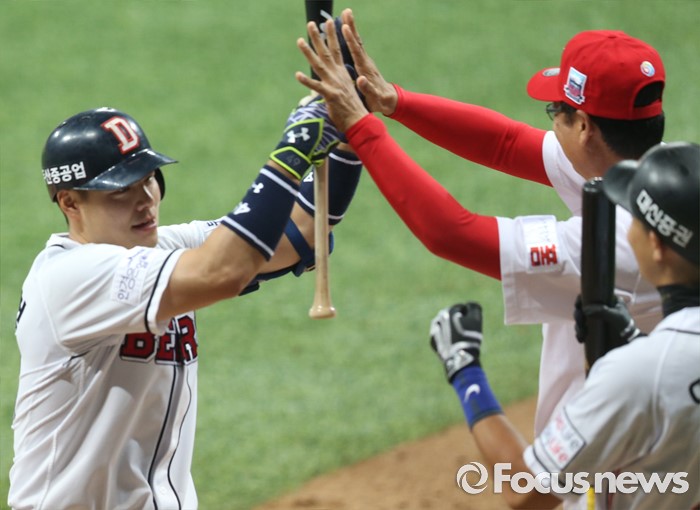 | △ 민병헌 홈런 축하해 |