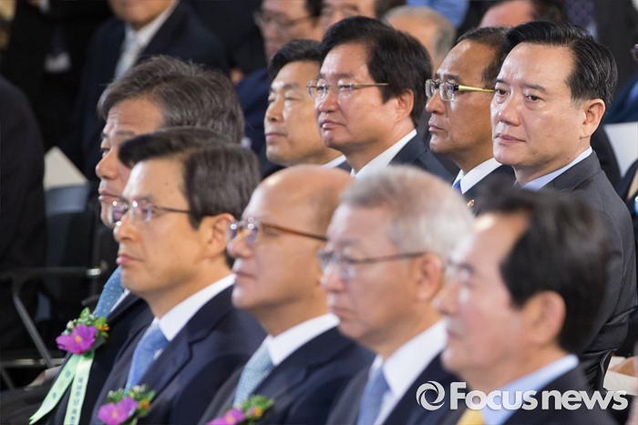 (서울=포커스뉴스) 김현웅(오른쪽 위) 법무부 장관이 17일 오전 서울 영등포구 여의도 국회의사당 중앙홀에서 열린 제68주년 제헌절 경축식에 참석하고 있다.