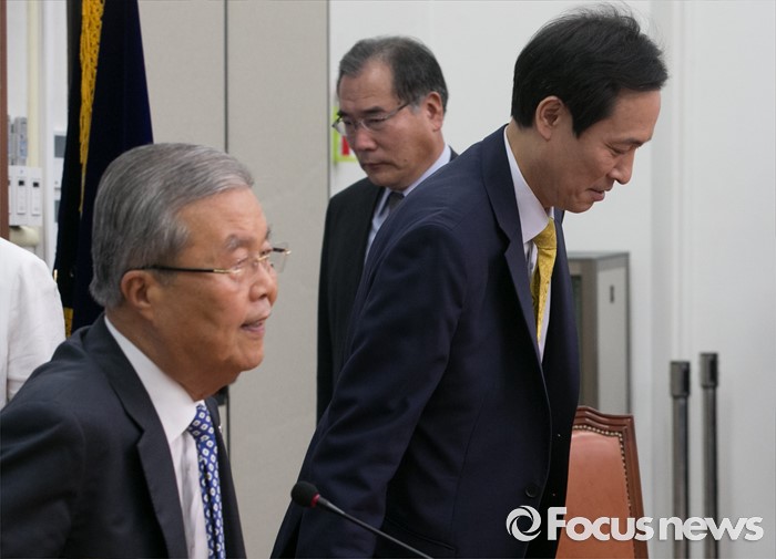 | △ 회의 참석하는 김종인-우상호 |