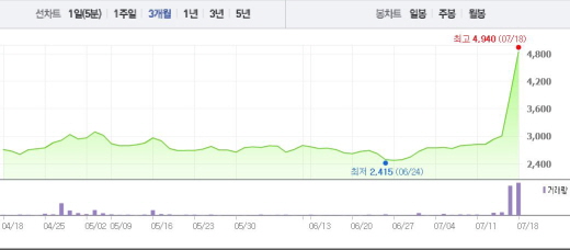 이는 2주 전 주가인 4일(2745원)과 비교했을 때 75.7% 상승한 수치다.
