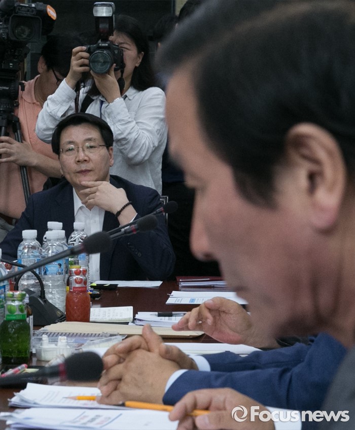 (서울=포커스뉴스) 18일 오전 서울 여의도 국회에서 열린 외교통일위원장 및 3당 간사단과 통일부, 개성공단 기업협의회 임원진 긴급간담회에 참석한 김형석(왼쪽) 통일부 차관과 정기섭 개성공단입주기업 비대위 대표공동위원장 등이 심재권 외통위원장의 모두발언을 듣고 있다.