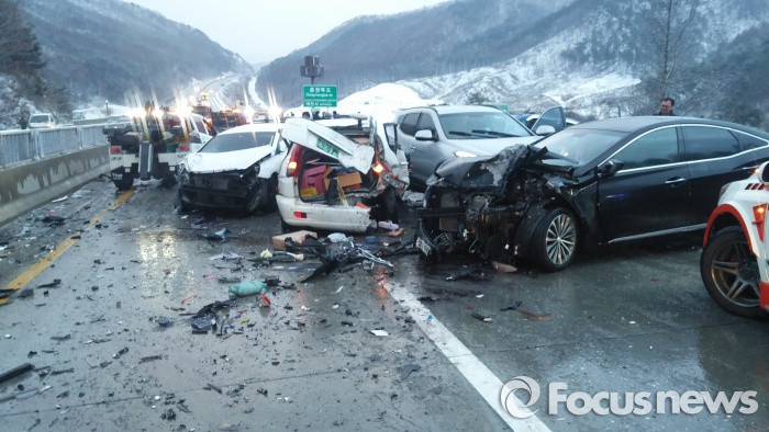 | △ 중앙고속도로 원주 신림지점..눈길 35중 추돌사고 |