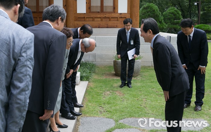 (서울=포커스뉴스) 정세균 국회의장이 18일 오전 서울 여의도 국회 사랑재에서 국회의원 특권 내려놓기 추진위원회 위촉장 수여식을 마친 뒤 참석자들과 기념촬영 후 인사하고 있다.