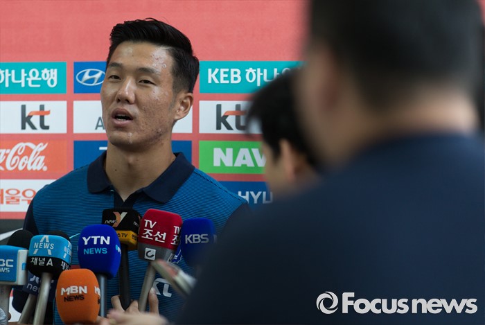 (인천공항=포커스뉴스) 2016년 리우데자네이루 올림픽 메달에 도전하는 올림픽 축구 국가대표팀 석현준이 18일 오후 인천국제공항에서 브라질 상파울루로 출국하기 전 취재진 질문에 답하고 있다.