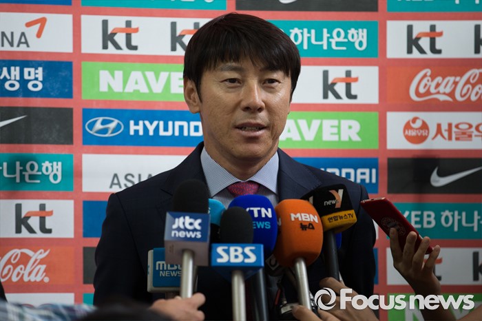 (인천공항=포커스뉴스) 2016년 리우데자네이루 올림픽 메달에 도전하는 신태용 올림픽 축구 국가대표팀 감독이 18일 오후 인천국제공항에서 브라질 상파울루로 출국하기 전 취재진 질문에 답하고 있다.