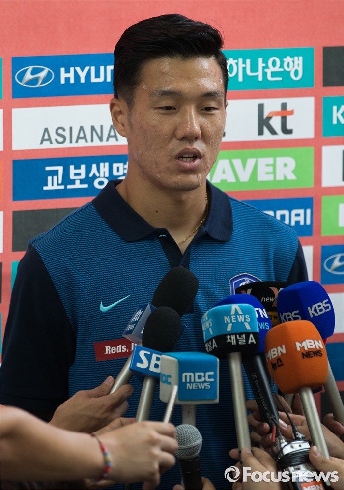 (인천공항=포커스뉴스) 2016년 리우데자네이루 올림픽 메달에 도전하는 올림픽 축구 국가대표팀 석현준이 18일 오후 인천국제공항에서 브라질 상파울루로 출국하기 전 취재진 질문에 답하고 있다.
