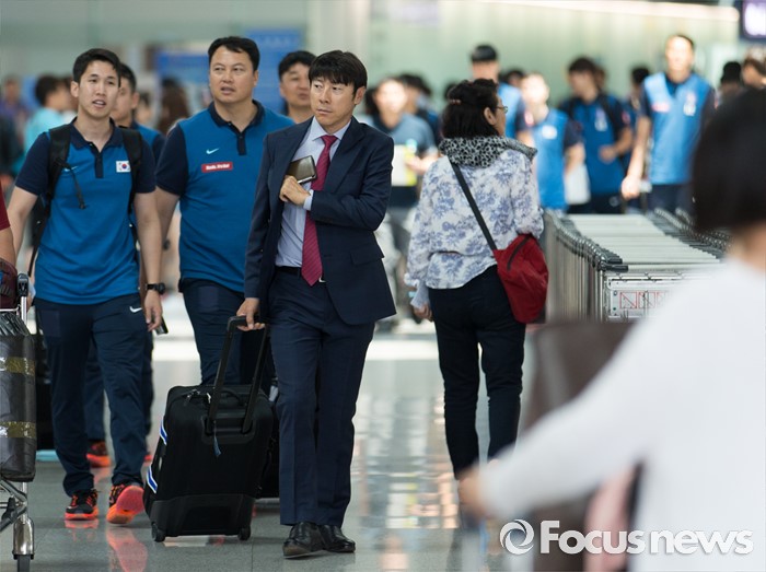 | △ 브라질 출국 위해 이동하는 신태용호 |