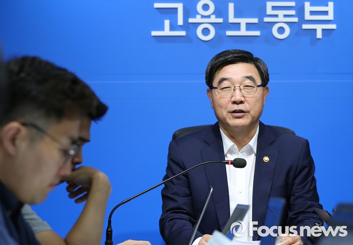(세종=포커스뉴스) 이기권 고용노동부장관이 18일 오전 세종시 정부세종청사 고용노동부 기자실에서 2016년 하반기 고용노동정책 방향에 대한 브리핑을 하고 있다.