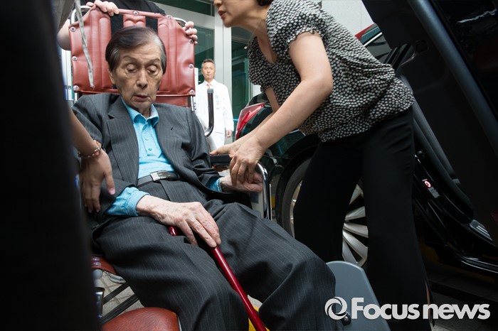 (서울=포커스뉴스) 신격호 롯데그룹 총괄회장이 입원 40일만인 18일 오후 서울 송파구 서울아산병원에서 퇴원을 하고 있다.