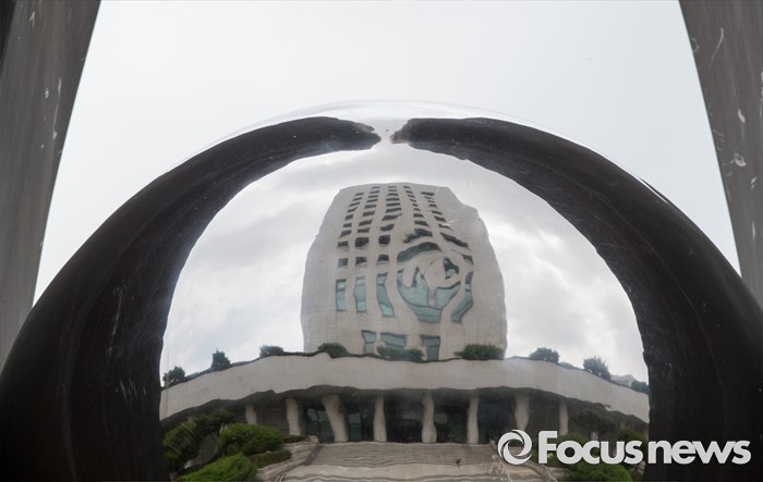 (서울=포커스뉴스) 18일 오후 서울 서초구 대검찰청에서 전국 고검장 간담회가 열린 가운데 청사 앞 구조물에 비친 대검찰청의 모습이 일그러져 있다. 검찰은 이날 간담회를 통해 진경준 검사장의 뇌물수수 사건과 관련해 일선 검찰청의 의견을 수렴하고 대책을 논의하기로 밝혔으나, 언론에 비공개로 진행했다.