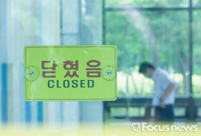 (서울=포커스뉴스) 18일 오후 서울 서초구 대검찰청에서 전국 고검장 간담회가 열린 가운데 출입문 유리에 폐문 표시가 달려 있다. 검찰은 이날 간담회를 통해 진경준 검사장의 뇌물수수 사건과 관련해 일선 검찰청의 의견을 수렴하고 대책을 논의하기로 밝혔으나, 언론에 비공개로 진행했다.