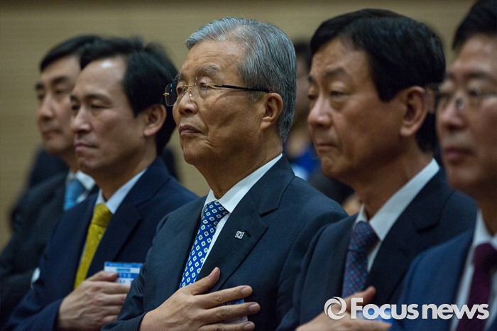 (서울=포커스뉴스) 김종인(오른쪽 세 번째) 더불어민주당 비상대책위 대표가 18일 오후 서울 여의도 국회의원회관에서 열린 '더불어민주당 중앙위원회의'에 참석해 국민의례 하고 있다.