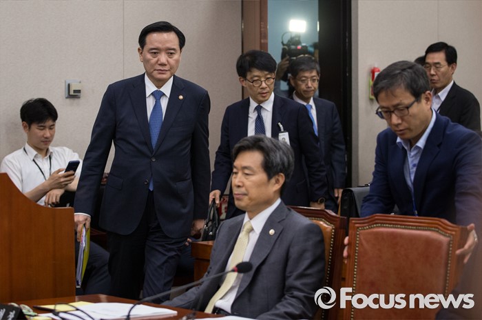 (서울=포커스뉴스) 김현웅 법무부 장관이 18일 오후 서울 여의도 국회에서 열린 법제사법위원회 전체회의에 출석하고 있다.