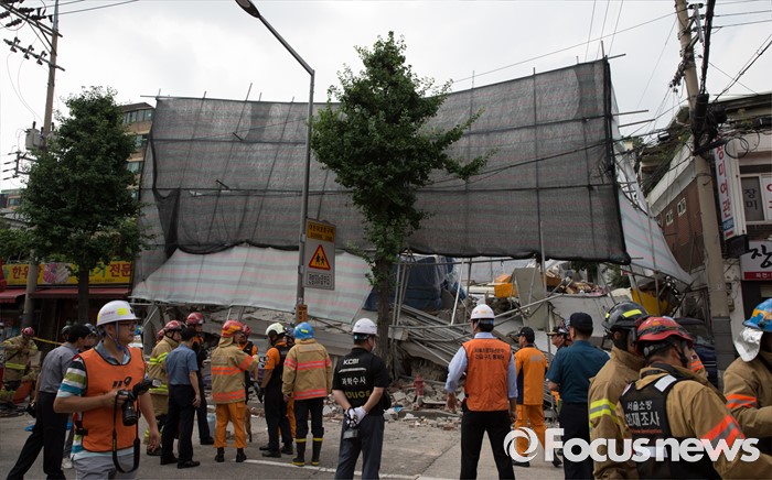 (서울=포커스뉴스) 18일 오후 2시05분쯤 서울 서대문구 홍은동의 건물 리모델링 개보수 공사현장에서 건물이 무너졌다.