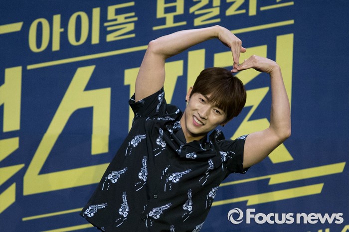 | △ 손으로 하트 그리는 장우혁 |