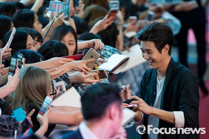 (서울=포커스뉴스) 18일 오후 서울 영등포구 타임스퀘어에서 열린 영화 '부산행' 레드카펫 행사에 참석한 배우 최우식이 팬들에게 사인을 해주고 있다.