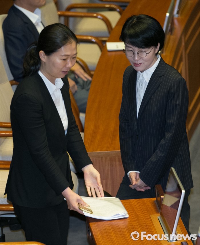 (서울=포커스뉴스) 19일 오전 서울 여의도 국회에서 열린 344회 국회(임시회) 1차 본회의, 사드(THAAD·고고도미사일방어체계) 배치에 대한 긴급현안질문에 참석한 박선숙 국민의당 의원이 동료 의원들과 인사하고 있다.