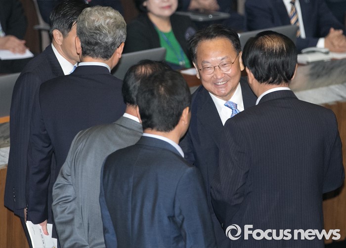 (서울=포커스뉴스) 19일 오전 서울 여의도 국회에서 열린 344회 국회(임시회) 1차 본회의, 사드(THAAD·고고도미사일방어체계) 배치에 대한 긴급현안질문에 참석한 유일호 경제부총리 겸 기획재정부 장관이 의원들과 대화하고 있다.