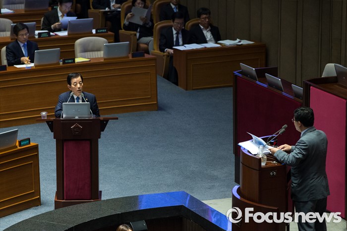 (서울=포커스뉴스) 한민구 국방부 장관이 19일 오전 서울 여의도 국회에서 열린 제344회 국회(임시회) 1차 본회의, 사드(THAAD, 고고도미사일방어체계) 배치에 대한 긴급현안질문에 참석해 의원 질의에 답하고 있다.