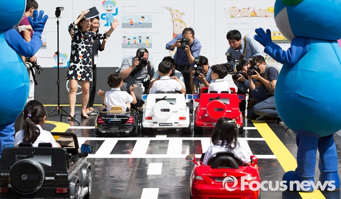 (서울=포커스뉴스) 19일 오전 서울 송파구 어린이 교통안전교육장에서 어린이들이 모바일키즈 프로그램을 통해 교통안전교육을 체험하고 있다. 메르세데스-벤츠 사회공헌위원회와 도로교통공단은 지난 2015년부터 1년 7개월여 동안 어린이교통공원을 개보수 지원했다.
