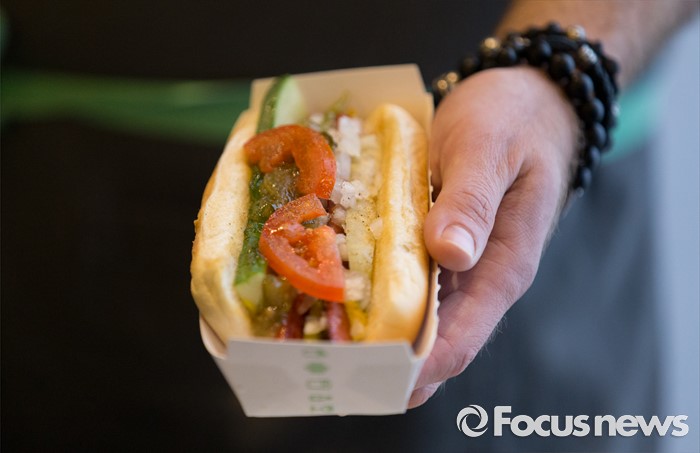 (서울=포커스뉴스) 19일 오전 서울 강남구 쉐이크쉑 강남점에서 열린 미디어 프리젠테이션 행사에서 Shack-cago Dog가 공개되고 있다.