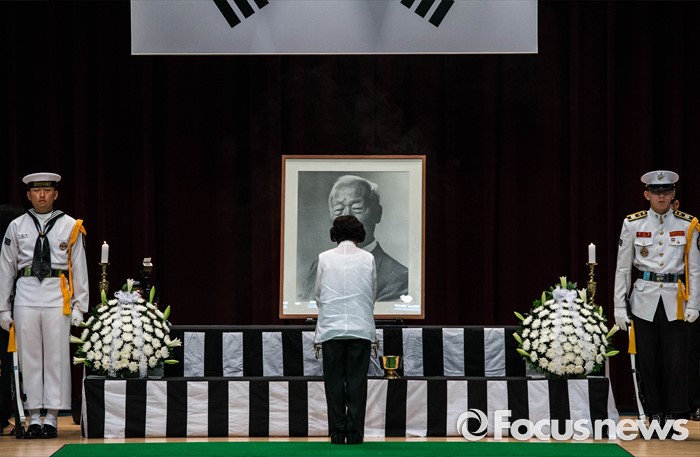 (서울=포커스뉴스) 19일 오전 서울 동작구 국립현충원 현충관에서 우남 이승만 전 대통령 51주기 추모식이 열리고 있다.
