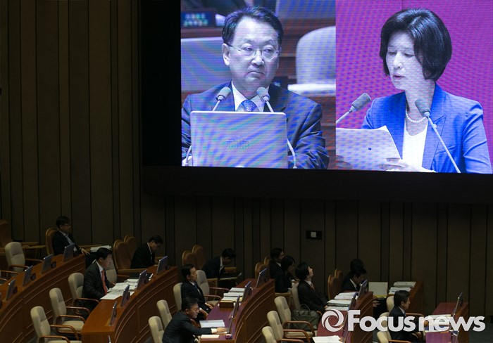 (서울=포커스뉴스) 19일 오전 서울 여의도 국회에서 열린 344회 국회(임시회) 1차 본회의, 사드(THAAD·고고도미사일방어체계) 배치에 대한 긴급현안질문에 참석한 유일호 경제부총리 겸 기획재정부 장관이 백혜련 더불어민주당 의원의 질문에 답하고 있다.