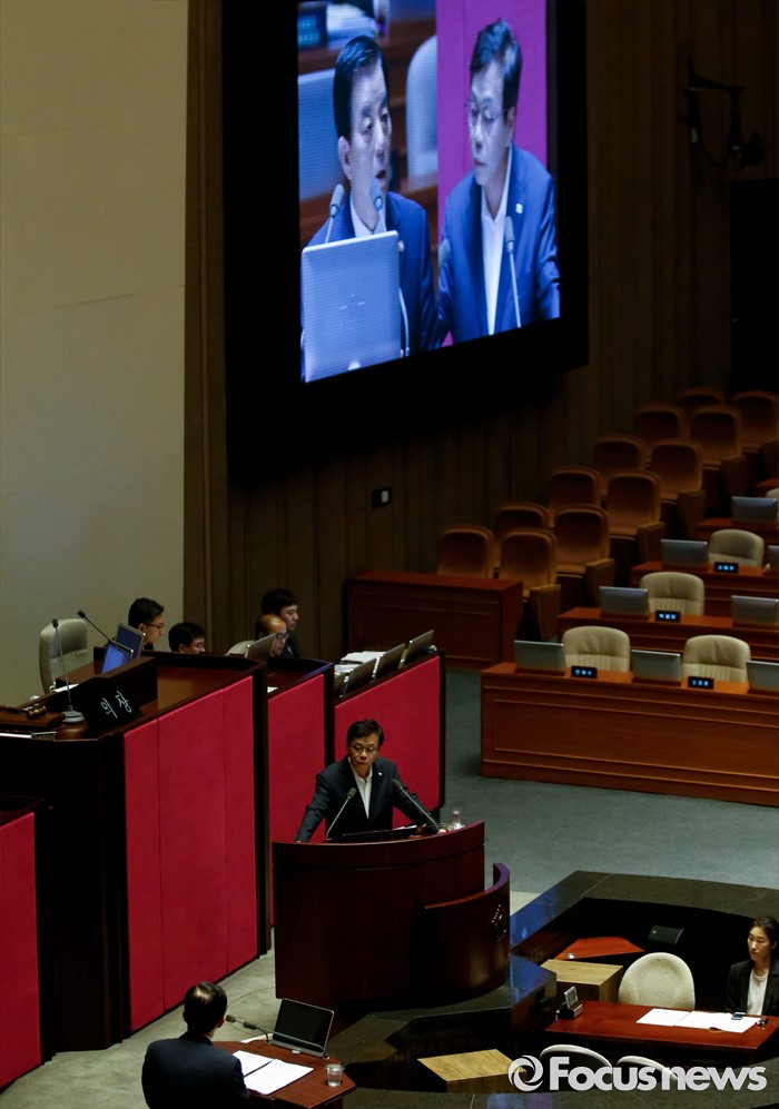 (서울=포커스뉴스) 19일 오후 서울 여의도 국회에서 열린 344회 국회(임시회) 1차 본회의, 사드(THAAD·고고도미사일방어체계) 배치에 대한 긴급현안질문에 참석한 이완영 새누리당 의원(경북 고령·성주·칠곡)이 한민구 국방부 장관에게 질문하고 있다.