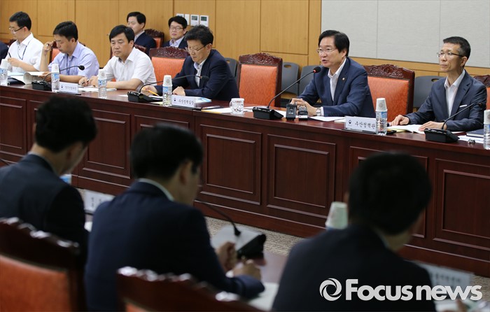 (세종=포커스뉴스) 김영석 해양수산부장관이 19일 오후 세종시 정부세종청사 해양수산부 대회의실에서 열린 제4차 수산물 수출대책회의에 참석해 회의를 주재하고 있다.