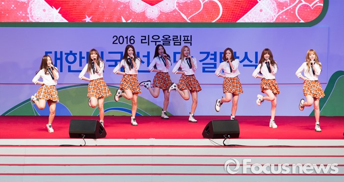(서울=포커스뉴스) 19일 오후 서울 송파구 올림픽공원 올림픽홀에서 열린 2016 리우올림픽 대한민국 선수단 결단식에서 걸그룹 러블리즈가 축하공연을 하고 있다.