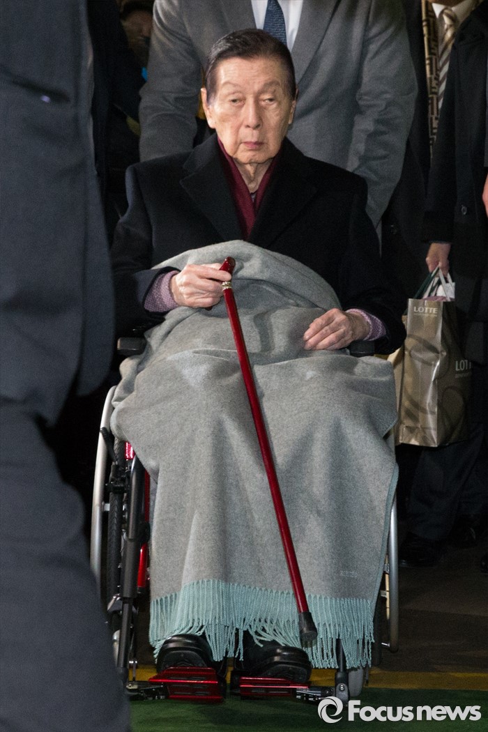 신 총괄회장의 장녀인 신영자 롯데장학복지재단 이사장은 롯데면세점 입점 비리 등으로 구속된 상태라 참석할 수 없다.(서울=포커스뉴스) 신격호 롯데그룹 총괄회장이 3일 오후 서울 서초구 서울가정법원에서 열린 '성년후견인 개시 심판 청구' 첫 심리에 출석 후 휠체어를 타고 법원을 나오고 있다.2016.02.03 허란 기자2016.05.16 강영은 기자2016.05.19 이서우 기자