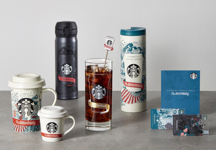 이와 함께 스타벅스는 17주년을 기념하는 보온병, 텀블러, 머그, 글라스, 코스터(컵받침), 머들러(음료를 젓는 막대) 등 상품 7종을 선보인다.
