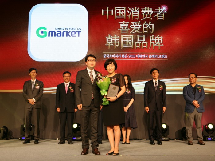 G마켓은 지난해 새롭게 신설된 '중국 소비자가 뽑은 2016 대한민국 올해의 브랜드 대상' 부문에서 2년 연속 대상을 수상했다. 해당 부문은 한 해 동안 소비자의 사랑을 가장 많이 받은 대표 브랜드를 소비자가 직접 선정한다. '중국 소비자가 뽑은 2016 대한민국 올해의 브랜드 대상'은 중국 언론사인 인민일보와 한국소비자포럼이 공동 진행했으며 지난 5월26일~6월5일까지 중국 현지 소비자의 투표를 거쳐 수상 브랜드를 선정했다.