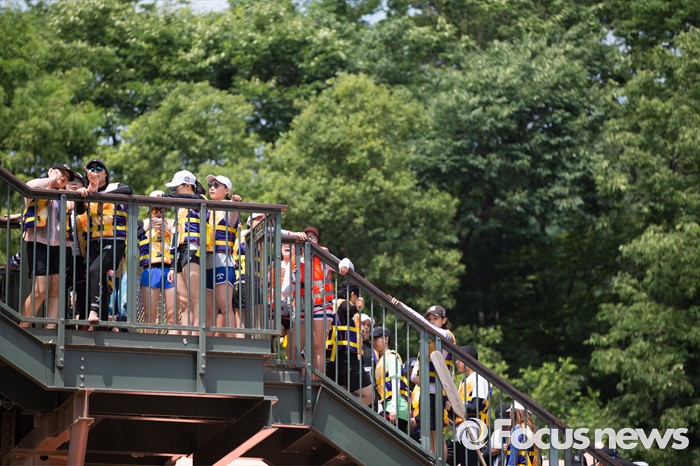 (용인=포커스뉴스) 서울과 수도권 등 전국 대부분 지역에 폭염주의보가 내려진 20일 오후 경기도 용인 에버랜드 캐리비안베이에서 시민들이 놀이기구를 타기위해 줄을 서고 있다.