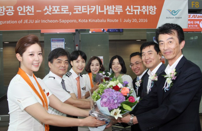 제주항공은 이날 오후 1시15분 인천국제공항 F 발권카운터 앞에서 최규남 제주항공 대표이사와 사쿠야마 마코토(作山誠) 일본 홋카이도관광청 소장, 사이드 무하질 자말룰릴 말레이시아관광청 한국소장을 비롯한 관계자들이 참석한 가운데 취항식을 열고 각각 주7회 일정으로 운항을 시작했다고 밝혔다.