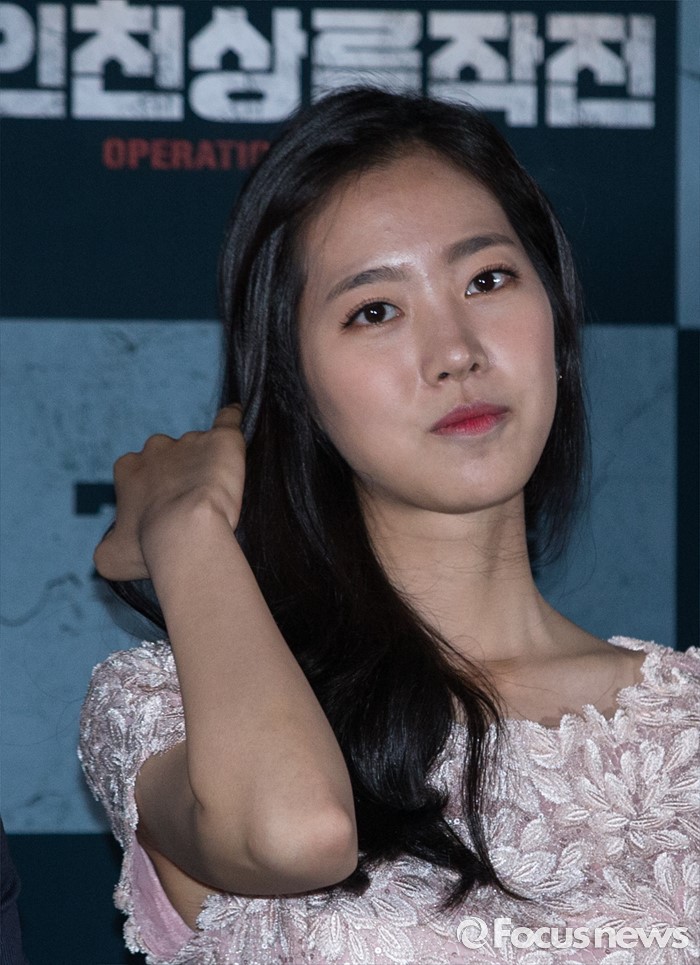 (서울=포커스뉴스) 20일 오후 서울 성동구 왕십리 CGV에서 열린 영화 '인천상륙작전' 언론시사회에 참석한 배우 진세연이 머리카락을 정돈하고 있다.
